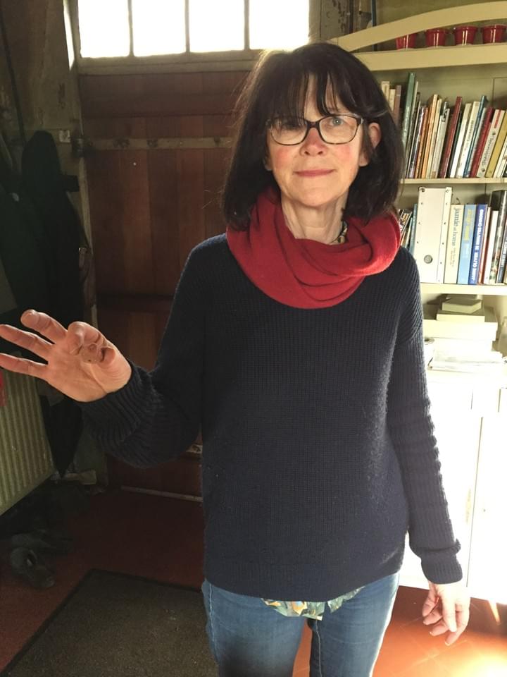 Denise ' We have sheep in the orchard as 'tondeuse organique'. They maintain the grass, keep the mice away and fertilise the trees'.