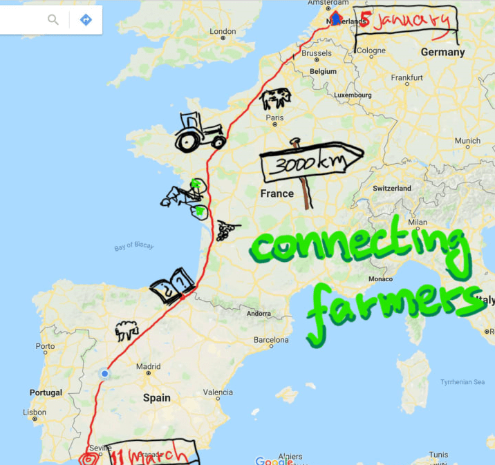 How?: I am travelling through Western Europe, from the Netherlands to the South of Spain to visit all kinds of farmers. And all that on my bicycle.